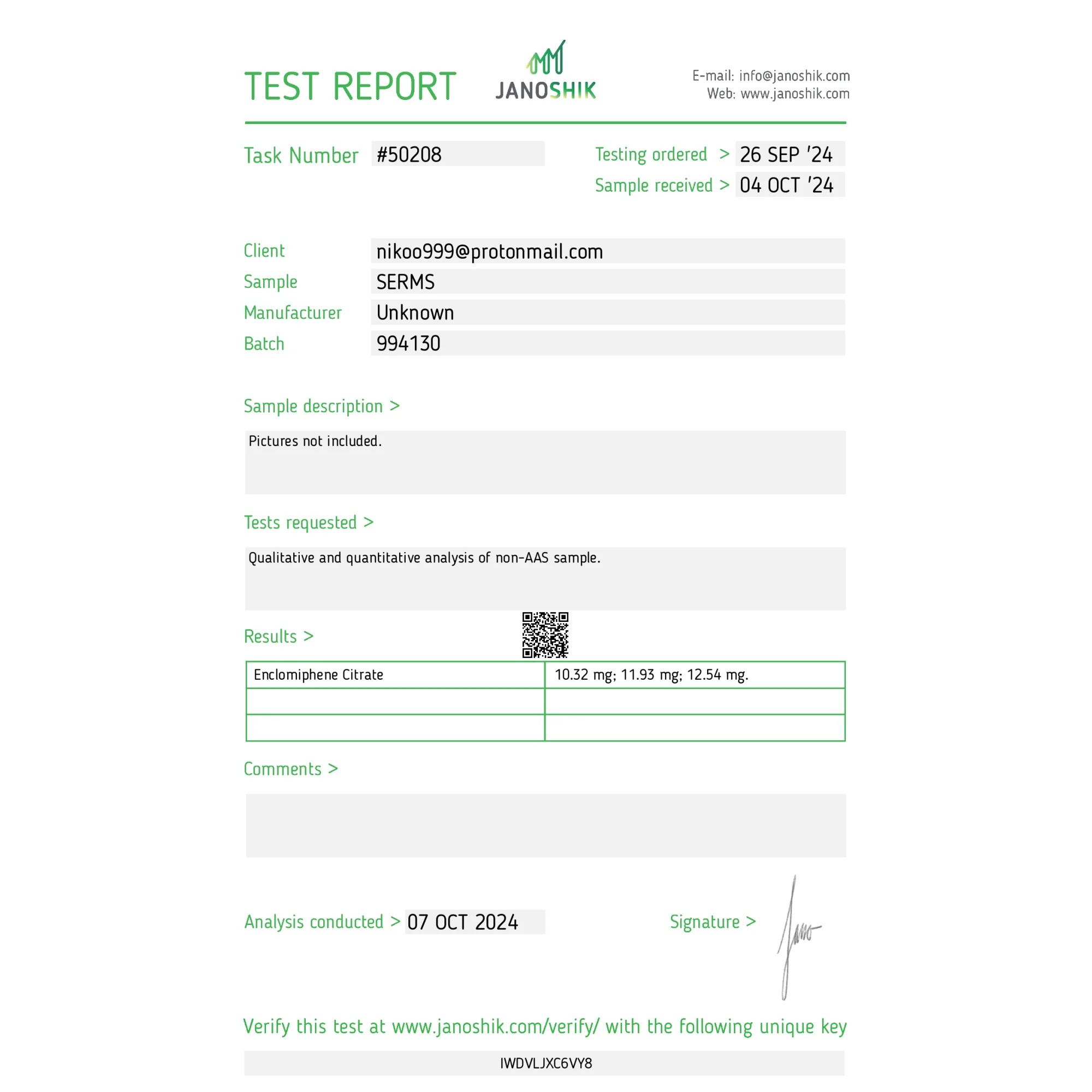 El 98% de nuestros productos son analizados por laboratorios independientes. La mayoría de las pruebas son públicas. Si no es así, pregúntenos y le enviaremos la prueba de laboratorio más reciente de este producto.